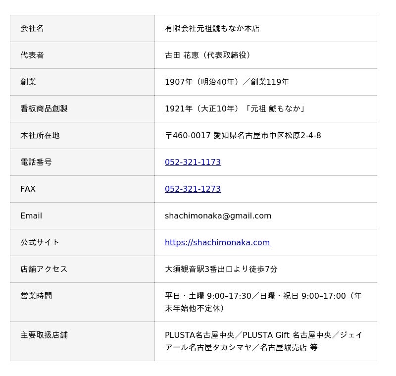 名古屋城の象徴である鯱(しゃちほこ)をモチーフとした菓子を100年以上にわたり製造・販売。伝統的な製法と上質な素材を守り続け、名古屋の観光土産としても広く認知されています。