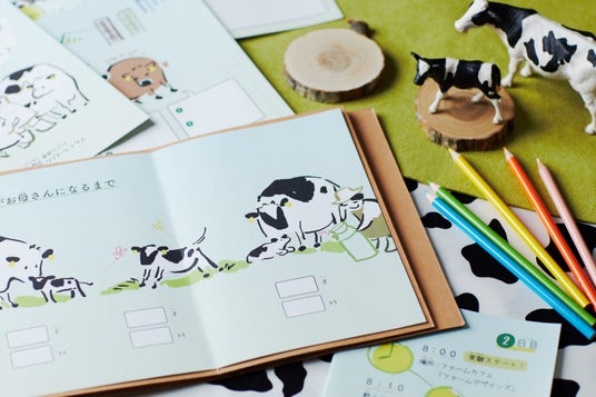 野外学習やチーズ作り体験を通じて、自ら発見し、気づいたことを「酪農ワークシート」にまとめます。どんな牛がいて、どんな個性を見つけたか、チーズ作りで気づいたことや、家族と一緒に分かち合ったときに感じたことを思い出しながら自由に書くことができます。牛や、チーズ作りのイラストを見て深く考察し整理したら、夏休みの自由研究の完成です。