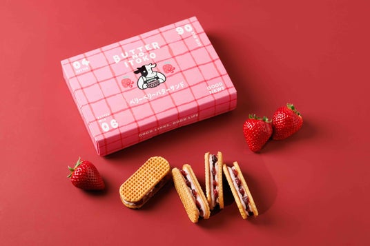 「いとこのフルーツバターサンド」は「バターのいとこ」の新ブランドとして、ふんわりとしたミルクやバターの風味に、食感や香り豊かなフルーツのハーモニーをお楽しみいただけるお菓子として誕生しました。「バターのいとこ」が大切にしてきた“素材を活かすものづくり”の思想を受け継ぎながら、バターを作る際の副産物であるスキムミルクの利活用に加え、各地の果樹農家の課題に向き合い、規格外フルーツの活用を目指したブランドでもあります。