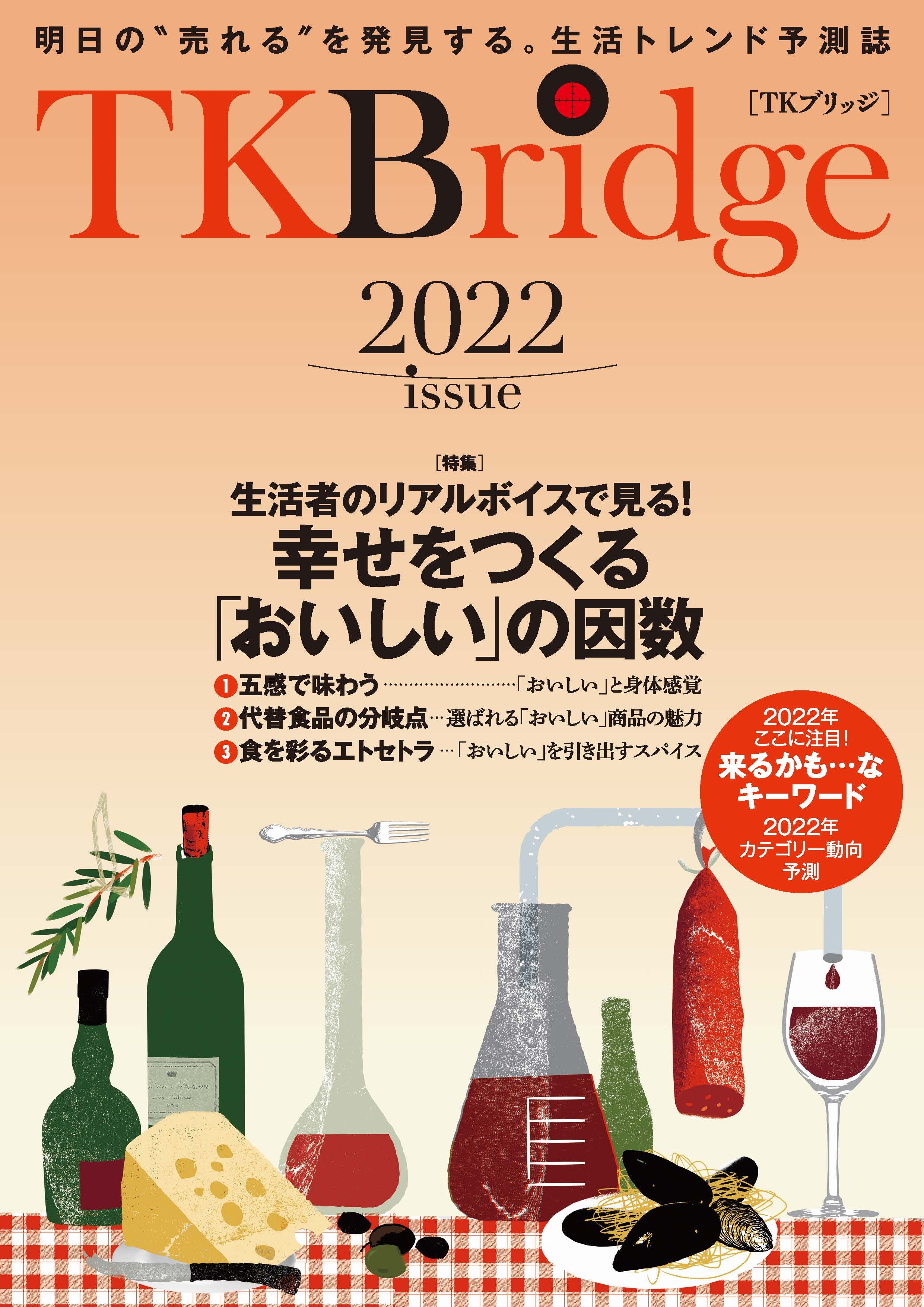 『TKBridge2022』は、製配販のサプライチェーン全域にたずさわる国分グループの知見と、販促企画/情報システム/包材・パッケージに強い凸版印刷の知見を掛け合わせることで、生活者の嗜好を見える化し、これからの売り場や商品がどのように変わっていくかを読み解いた予測誌です。