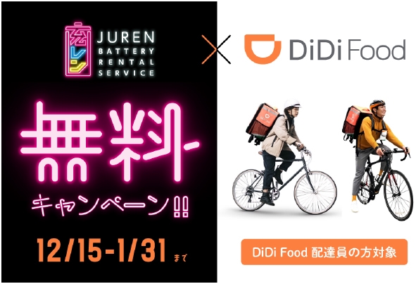 このたび、モバイルバッテリーレンタルサービス「充レン」は、DiDiフードジャパン株式会社が運営する「DiDi Food」の配達パートナーさまに対する業務支援制度としての活用を見据えた、配達業務における必須アイテムであるスマートフォン等の充電ニーズを検証するため、12月15日から実証実験※を実施しております。