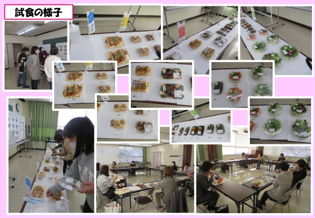 当部では、「からだがよろこぶデリ」を当管内の健康づくりの取組に活かしていただくため、普段から市村や地域で健康づくり活動に取り組んでいるボランティア組織「新潟県食生活改善推進委員協議会村上支部」(通称:食推)の皆さんと一緒に、管内の「けんこうtime推進店」が販売している「からだがよろこぶデリ」の惣菜(主菜・副菜)と弁当を購入して試食しました。