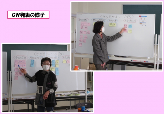 「けんこうtime推進店」と「からだがよろこぶデリ」について、グループワークをして発表しました