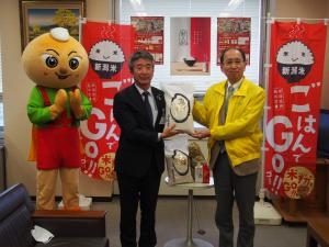 令和3年12月24日(金曜日)に、新潟米・米粉を食べようキャンペーン「ごはんでGO!!米粉もGO!!」の取組の一環として、新潟県フードバンク連絡協議会に新潟米200kgを寄附いたしました。