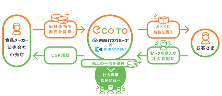 西部ガスホールディングス株式会社は、株式会社クラダシ(以下「クラダシ」)と業務提携を行い、フードロス削減などサステナブルな暮らしを推進することを目的に、社会貢献型ショッピングサイト「ecoto(いいコト)」(以下、「本サイト」)を、本日、開設しました。