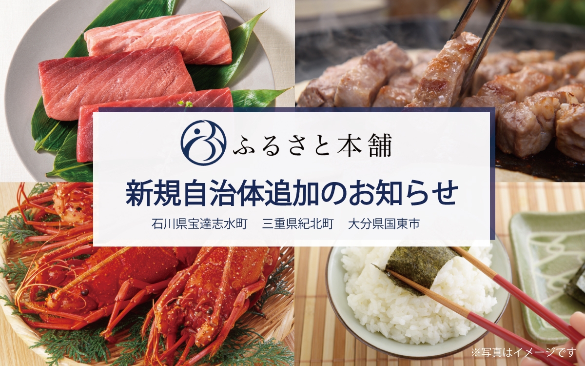 特産品ポータルサイト「ふるさと本舗」、石川県宝達志水町、三重県紀北町、大分県国東市の情報を追加