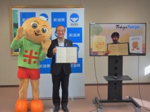 新潟県は、東京都と連携し、輸入小麦の価格高騰等に伴い、その代替として期待される米粉の活用及び消費の促進を図るとともに、相互の農林水産物の魅力の発信により消費拡大と販路の開拓等に繋げることを目的として協定を締結しました。