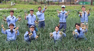 この度、都内で就農を目指す研修生が育てた「新タマネギ」が収穫を迎えました。「八王子研修農場産の新タマネギ」を使用したメニューが職員食堂で提供されますので、お知らせいたします。