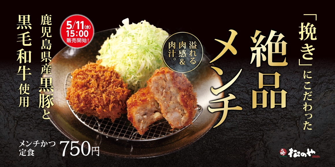松のや・松乃家にて、2022年5月11日(水)午後3時より、「絶品メンチかつ」を発売いたします。