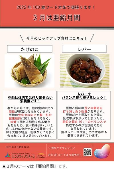 3月は旬の筍に多く含まれる亜鉛に注目したメニューが作成されております。亜鉛が効果的に働くためには10:1の割合で銅が必要となります。そのため、レバーなど銅を多く含む食材もお出しします。