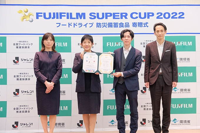 「FUJIFILM SUPER CUP 2022 フードドライブ」富士フイルムビジネスイノベーションが防災備蓄食品を全国フードバンク推進協議会へ寄贈