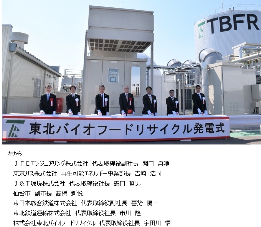 株式会社東北バイオフードリサイクル(本社:宮城県仙台市、社長:宇田川悟、以下、「東北バイオフードリサイクル」)※1は、仙台市において食品リサイクル発電プラントを2022年2月より段階的に稼働し、本日、本格的な発電事業の開始に伴い発電式を執り行いました。