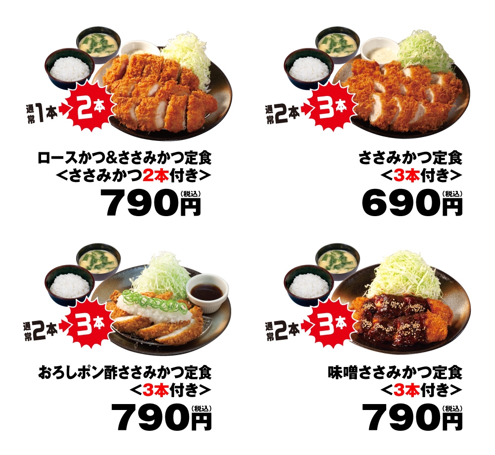 - ※本キャンペーン期間中は「たっぷりささみかつ定食」を690円で販売いたします。