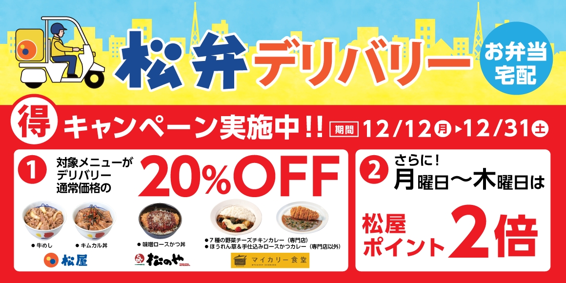 松屋フーズグループの宅配サービス「松弁デリバリー」にてお得なキャンペーン開催!