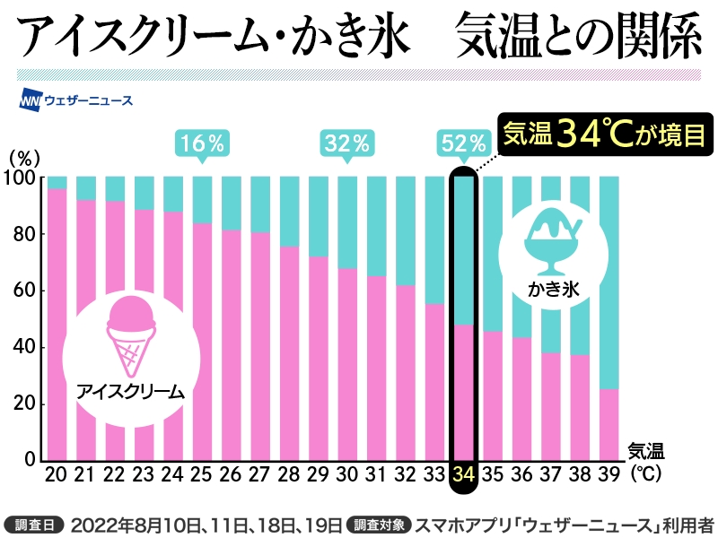 アイスクリームとかき氷どっちが食べたい?気温34度が境目に