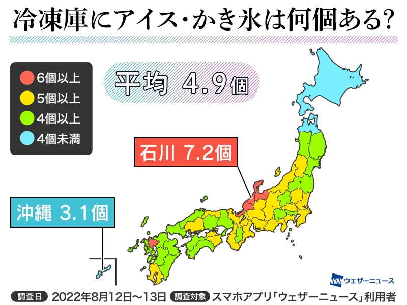 ※2:ウェザーニュース 冷凍庫にアイス何個ある?石川県が7.2個で全国トップ