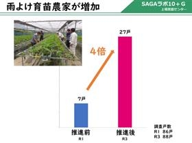 SAGAラボ10+Gで「いちごさん」の炭疽病対策を報告最終更新日:2022年8月26日 県内の10試験研究機関が知事に成果報告と意見交換を行う「SAGAラボ10+G」。今年は第1回目が8月3日に開催され、当センターを含め5機関が報告しました。当センターからは東松浦農業振興センター上場普及課およびJAと連携で取り組んだいちご新品種「いちごさん」の炭疽病対策である「雨よけ育苗」の実証試験普及状況について報告しました。雨よけ育苗により「いちごさん」の炭疽病の発生が低減し、生産額の向上につながっています。 発表スライド1 発表スライド2 |