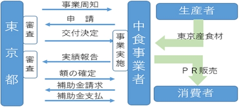 事業対象期間内において東京産食材を使用した総菜・デザート等の飲食物を販売、PRした場合の東京産食材の購入費(食材費、送料)の一部を補助