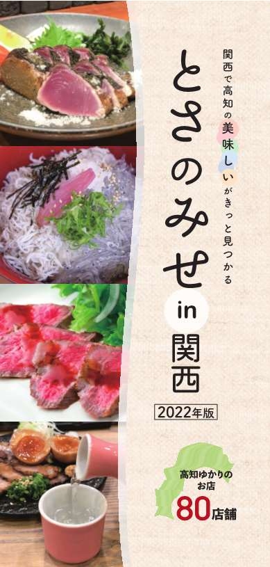 こちらの冊子「とさのみせ」では、関西にある、高知の食やお酒を楽しめるお店を紹介しています。