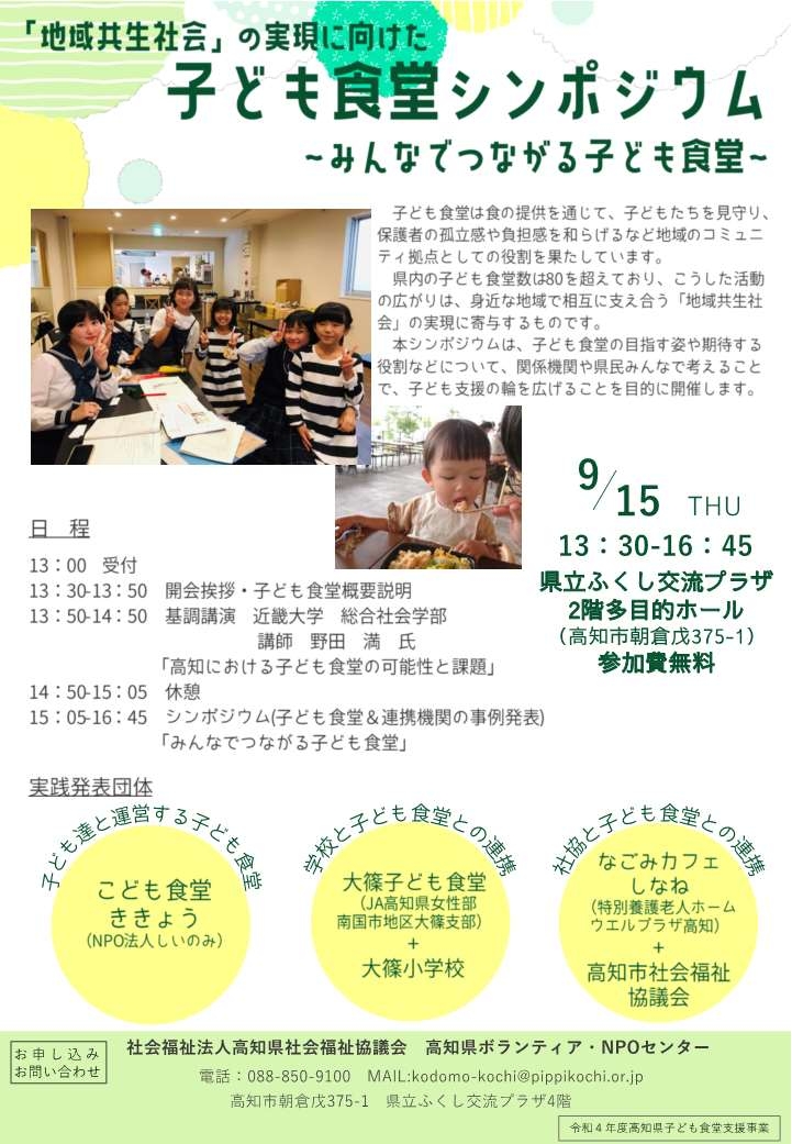 本シンポジウムは、子ども食堂の目指す姿や期待する役割などについて、関係機関や県民みんなで考えることで、子ども支援の輪を広げることを目的に開催します。