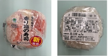 ・「もりもり!香り箱の寿司」204円(税込220円)の上記該当地域で販売された商品のうち、商品裏面に記載の消費期限が2023年3月10日午後1時のもの。