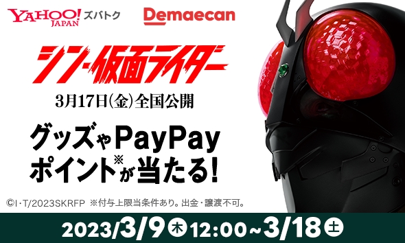 また、2023年3月9日(木)から開始しているYahoo!ズバトクでのキャンペーン「『シン・仮面ライダー』映画公開記念スタンプラリー」でも、デイリーミッションを2023年3月15日(水)に実施いたしますので、ぜひご参加ください。