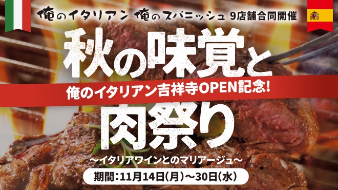 「秋の味覚と肉祭り」開催!俺のイタリアン・俺のスパニッシュ