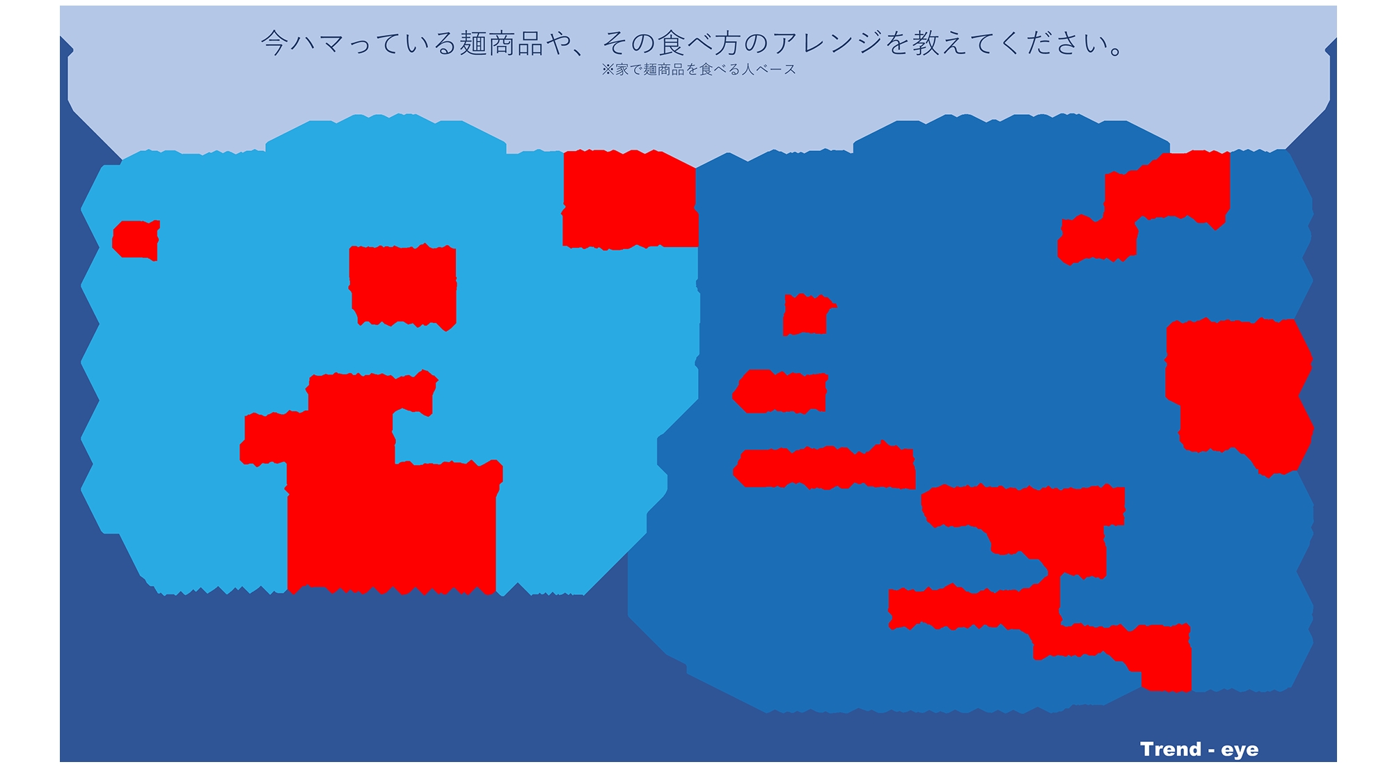 どのような場面で麺商品を食べているかという質問では、20代は「夜食」や「ジャンクなものが食べたくなったとき」で40・50代を上回り、“困ったときのお昼ごはん”といった日常食べる習慣は薄いものの、ジャンクフードとしての存在感が高いことが確認できた。