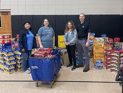 | 米国アラバマ州Decaturに所在する、TFA社とCMA社Decatur工場は、アラバマ州の業界をあげてのフードドライブ(主に家庭で余っている食品を集め、フードバンクや地域の福祉団体などに寄贈する活動)である、「Barrels of Love」に参加しました。 当活動で集まった食品は、Decaturの救世軍と、困窮している人々に支援と援助を提供する非営利団体のCommittee on Church Cooperationに贈られます。また、一部は、4月上旬の春休み中に子供たちが十分な食べ物を得られるように、DecaturとDecaturが所在するMorgan郡の学校のバックパック・フード・プログラム(週末や長期休み中に子供たちに食品を配布する取り組み)にも使用されます。 Barrels of Loveは、毎年2月14日のバレンタインデーにスタートし、3月の第1金曜日が回収日となっています。TAM社、TFA社、CMA社では、今年もまた、スープやパスタ、瓶詰め肉、オートミールといった、保存の利く食品をたくさん集めることができました。 私たちは地域社会に貢献できることをうれしく思っており、今後も活動を続けていきます。 | 集まった食品とともに。左から、CMA社のCarterさん、 TFA社のSlaytonさん、TAM社のTaylorさん、 CMA社のEmersonさん |