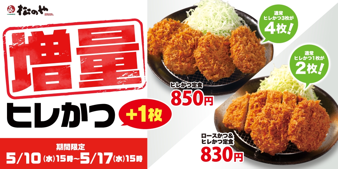 【松のや】お値段そのままヒレかつが増量!「ヒレヒレフェア」開催