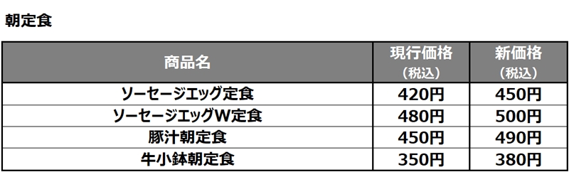 株式会社松屋フーズは、玉子をはじめとする原材料価格の高騰や光熱費、人件費、配送費、包材費などの上昇、および為替変動の影響を受け、慎重に検討した結果、商品の質を維持・向上し、安定供給を図るため、2023年3月15日(水)午前5時より、朝定食の一部商品の価格改定をさせていただくことと致しました。