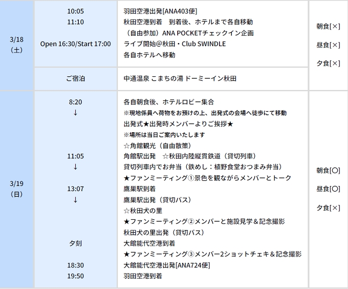 今回、ディアステージ社所属のアイドル「虹のコンキスタドール」を秋田へ誘致し、秋田市内のライブハウス「Club SWINDLE」でライブを行い、翌日には、ファンとの交流会を組み入れたツアーを企画いたしました。ツアーでは、角館の武家屋敷を散策後、秋田内陸縦貫鉄道の貸切列車を用意し、ファンとの交流を深めます。また、「秋田犬の里」でアイドル&ファン&秋田犬とのふれあう時間を設け、ツアー参加者の皆様にリアルな「秋田犬」を感じていただきます。