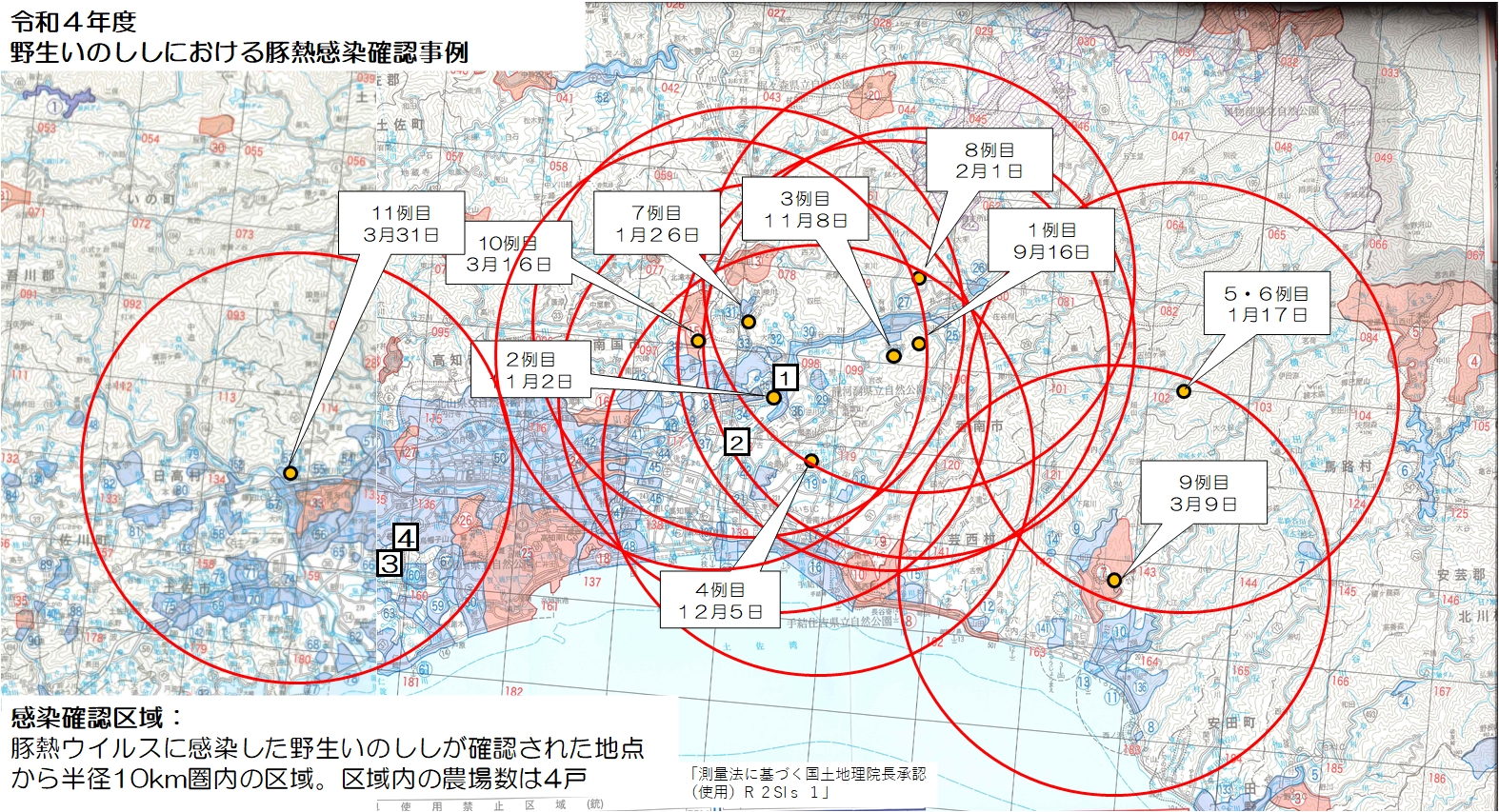 県内における「捕獲野生いのしし」の「豚熱」事例の確認について(3/31?県内11例目)