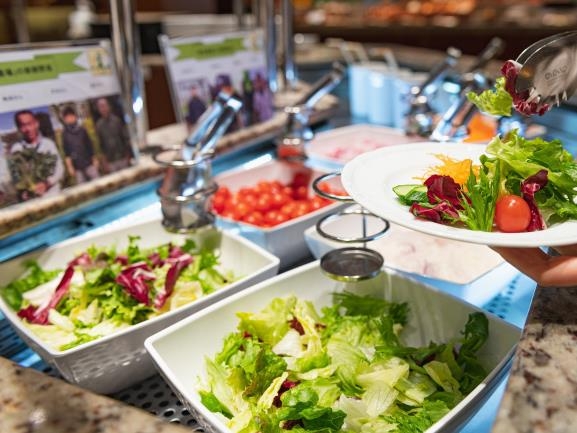 旬の新鮮な食材を中心に老若男女問わず楽しめる朝食メニューを提供しているコンパスの「神奈川朝食」。神奈川県の農家より旬の野菜を取り入れるだけでなく、環境に配慮した食材や地産地消を考慮した農畜水産物、またそれらを使用した加工品など、県を代表する特産品を組み合わせたオリジナリティ溢れるメニューをご用意しております。横浜市内産の農畜産物を積極的にメニューに取り入れているレストランとして「よこはま地産地消サポート店」に登録するほか、横浜市が推奨する「横浜農場」の取り組みにも賛同し、地産地消を推奨しております。2008 年に導入した株式会社ヤサイクルとの共同取り組み「自立循環型食品リサイクルループ=ヤサイクル」も継続、横浜市内で新たに契約農家を増やし、ホテル館内で堆肥化した食品資源で栽培されたエコ野菜を積極的に使用しています。これらの活動が評価され、横浜ベイシェラトンホテルは 2021 年第 2 回「横浜市 SDGs 認証制度“YSDGs”」において <上位 Superior>認証を獲得、昨年 2022 年、第 8 回の認証では<最上位Supreme>へランクアップいたしました。