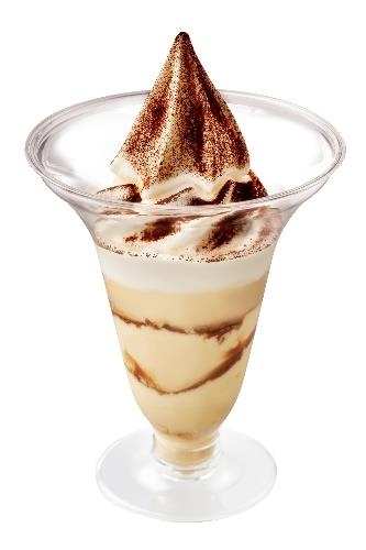 ティラミスプリンのほろ苦さとソフトクリームの相性が抜群!コロンビア産のコーヒーソースのほろ苦さと、北海道産マスカルポーネチーズの優しいコクによって、バランスの良いパフェに仕上げました。