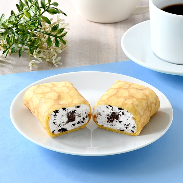 このたび、新フレーバーとして、クランチ入りのバニラホイップクリームとチョコレートコーティングを施したココアクランブルをクレープで包み込んだ「ファミマ・ザ・クレープ クッキー&クリーム」を発売いたします。今回も、「ファミマ・ザ・クレープ」の特長の1つである独特のもちもち食感のクレープ生地をお楽しみいただけるように仕立てました。