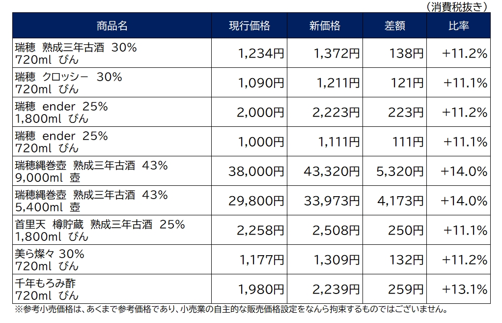 オエノングループの合同酒精株式会社(代表取締役社長:西永裕司 本社:東京都墨田区 以下、同社)は、同社が仕入・販売する瑞穂酒造株式会社(代表取締役:玉那覇美佐子 本社:沖縄県那覇市 以下、瑞穂酒造)の泡盛「瑞穂 熟成三年古酒」など一部商品について販売価格を2023年7月3日出荷分より改定(値上げ)することを決定しましたので、お知らせします。