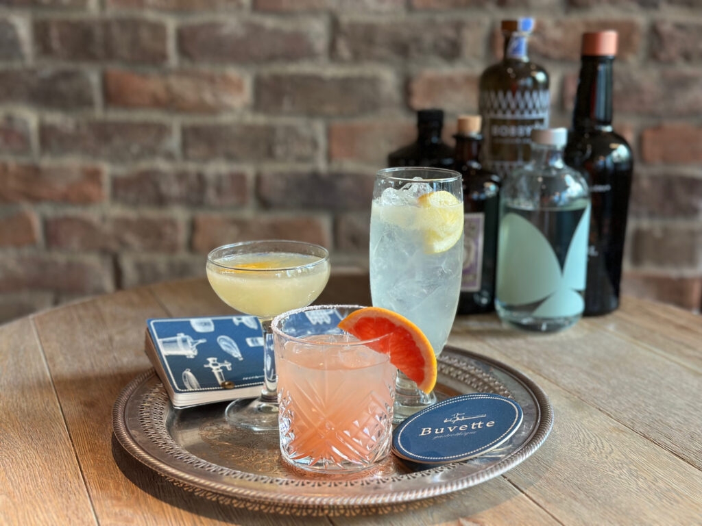 さらに、これらのジンやフレッシュフルーツを使用した多彩なカクテルも用意。クラシックなカクテルからオリジナルレシピのものまで、いずれも爽やかなテイストの中に香りを生かした拘りのカクテル各種を揃えました。ぜひ、Buvetteならではの、どこか懐かしくハートウォーミングで伝統的なフランスの料理の数々と共に、新しいクラフトジン体験をお楽しみください。