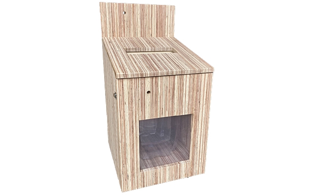 東京2020オリンピック・パラリンピックの選手村ビレッジプラザで使用した千葉県産木材を「木材リレー」として再活用した「資源回収箱」です。持続可能な社会の実現に向けた象徴として、東金市では東京2020オリンピック・パラリンピックのレガシーを引き継ぎ「道の駅 みのりの郷東金」 へ設置しています。