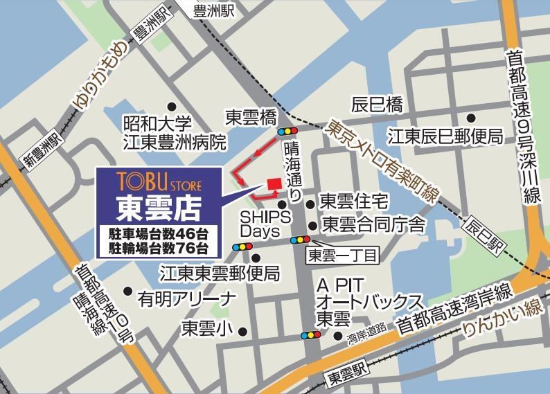 東雲店は、勝どき店(東京都中央区勝どき)、晴海三丁目店(東京都中央区晴海)に続き、当社三店舗目の湾岸エリアへの出店となります。