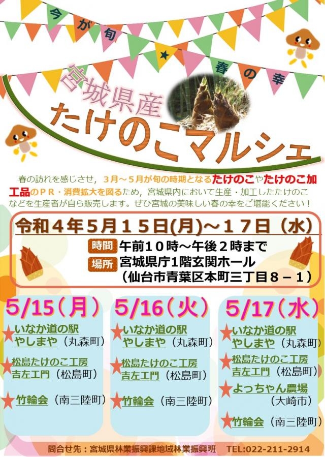 県内の生産者が集合するこの機会にぜひ、宮城のおいしい春の幸であるたけのこをお買い求めください。