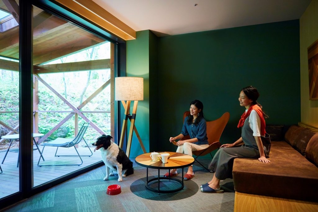 特徴1 奥入瀬渓流の自然に癒されながら、愛犬との滞在を楽しめるテラス付の客室