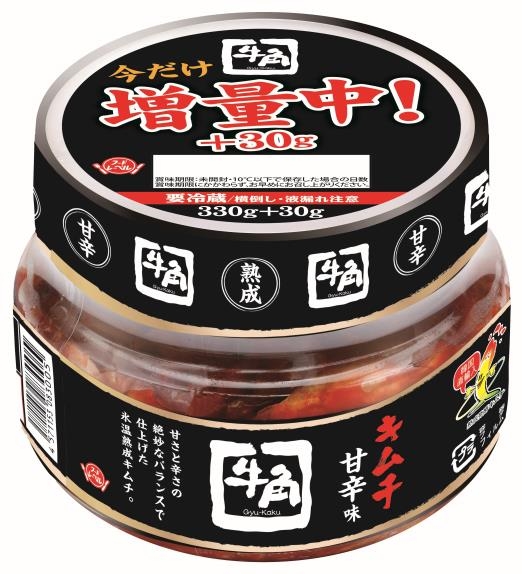 ・ 日頃ご愛顧いただいている「牛角韓国直送キムチ330g」の美味しさはそのままに、期間限定で30gの増量を実施します。