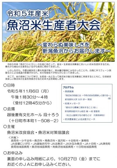 詳細はこちら 魚沼米生産者大会案内チラシ [PDFファイル/482KB]