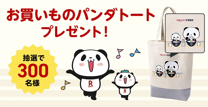 特設サイト:https://r.gnavi.co.jp/plan/campaign/?sc_cid=cp_release_cam231016_01期間:2023年10月16日(月)10:00~2024年1月31日(水)23:59参加条件:①キャンペーンにエントリー ※楽天ID連携未連携の方は同時にID連携がされます ※来店日時までのエントリーが対象です②ポイント受取を「楽天ポイント」に設定③対象期間中に対象店でネット予約、来店【予約条件】・ランチ :2名以上、1,500円以上のコース予約・ディナー:2名以上、3,000円以上のコース予約 <ポイント進呈>内容:ディナー:人数×100ポイント、ランチ:人数×60ポイント ※通常のネット予約ポイントとは別途進呈。 ※予約ポイントと合わせて最大300ポイント。上限:1予約あたり最大50名まで進呈 期間中1ユーザーあたり最大のキャンペーンポイントは、合計10,000ポイントまで。進呈日:2024年3月31日(予定) <お買いものパンダグッズ」プレゼント企画概要>期間:2023年10月16日(月)10:00~2024年1月31日(水)23:59参加条件:エントリー特典:お買いものパンダトート当選人数:300名発送日:2024年3月下旬予定