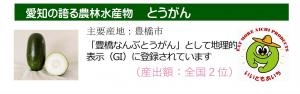 2023年度も、産出額等が全国上位の品目を2か月ごとに名刺に掲載しており、8、9月は「とうがん」を取り上げます(2023年4月3日発表済み。)。