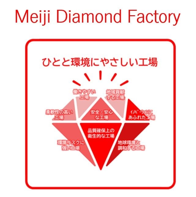 2023/12/05株式会社 明治(代表取締役社長:松田 克也)は、人と環境にやさしい工場を目指して、「品質確保上の衛生的な対応」「働きやすさ」「安全・安心」「柔軟性」「環境リスク対応」「地域貢献」「地球環境」「イノベーション」の8つの評価項目を設定し、工場建物の環境負荷低減と環境品質向上への取り組みを総合的に定量評価する指標「Meiji Diamond Factory(メイジ・ダイヤモンド・ファクトリー)」の策定および運用を開始しました。