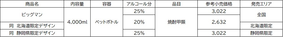 | 対象商品 | ビッグマン 25% 4,000ml ビッグマン 20% 4,000ml ビッグマン 20% 北海道限定デザイン 4,000ml ビッグマン 25% 静岡県限定デザイン 4,000ml |