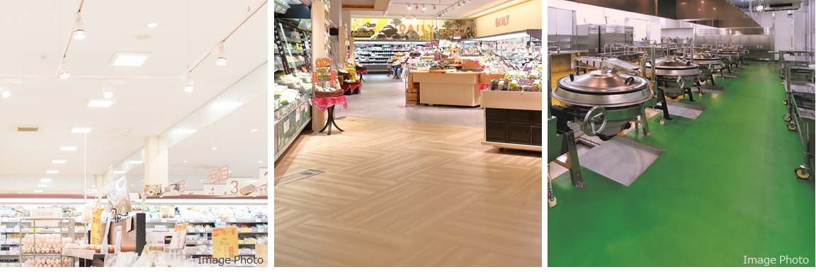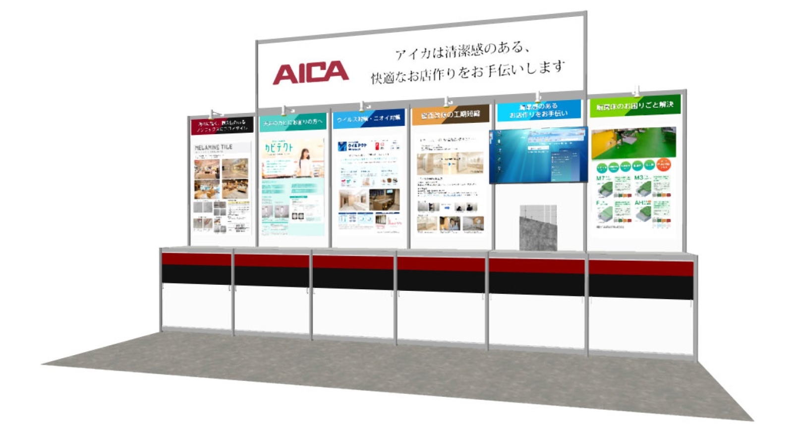 今回の出展では、高い防カビ性能をもつ天井材「カビテクト」をはじめ、ノンワックスでお手入れ簡単なフロアタイル「メラミンタイル」、抗ウイルス・抗菌・消臭の3つの性能を併せもつメラミン建材「ウイルテクトPlus」シリーズ、耐熱水性能に優れた塗り床材「アイカピュール耐熱」など、清潔感ある快適な店舗づくりに寄与する製品を幅広く紹介します。