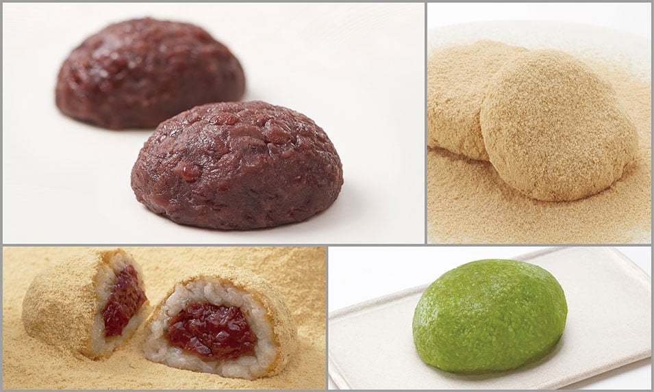 不動の人気を誇る『おはぎ(つぶ)』は年間約470万個、続いて人気の『おはぎ(きなこ)』もリピーターのお客様が多く、年間約300万個売り上げます。たっぷりお付けするきな粉は、国産大豆を遠赤焙煎して香りを高め、オリジナルブレンドしたおはぎ用きな粉です。あまったきな粉は牛乳やヨーグルトに入れてお楽しみいただくこともできます。また、季節限定商品や食べやすいサイズのおはぎまで多種多様にご用意しております。